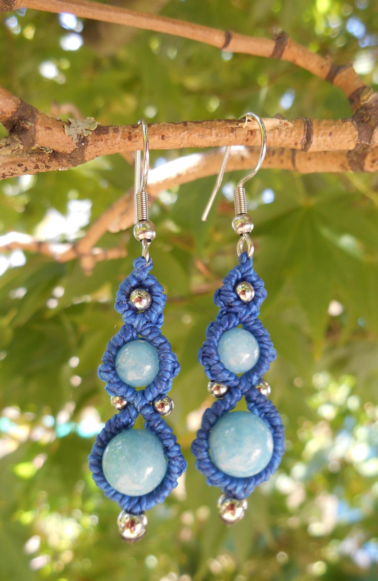 Boucles d’oreilles en macramé bleu avec calcédoine bleue et acier inoxydable (Réf. BO 5225086)