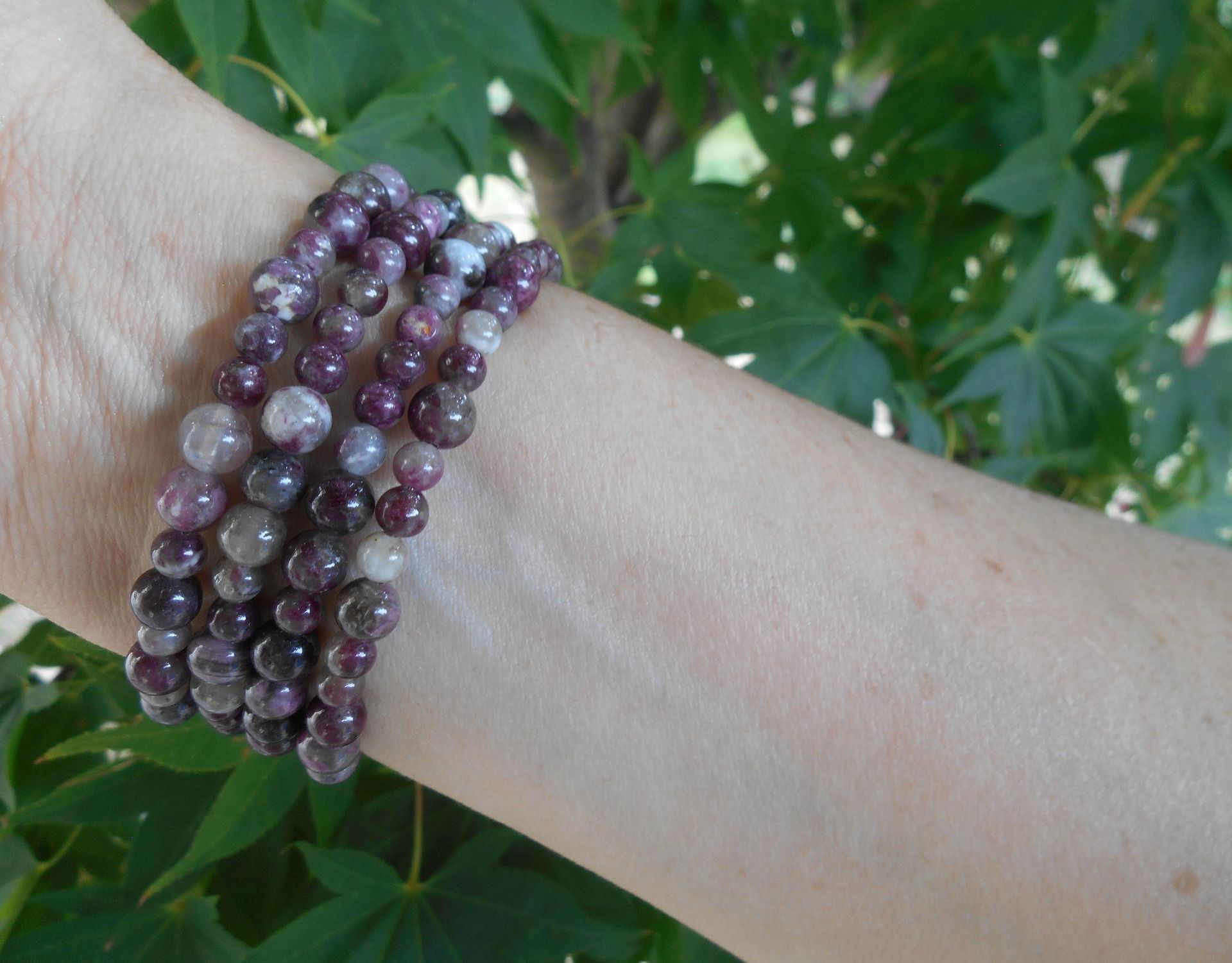 Bracelet en acier multi-rangs avec tourmaline fleurs de prunier et pampilles en acier inoxydable