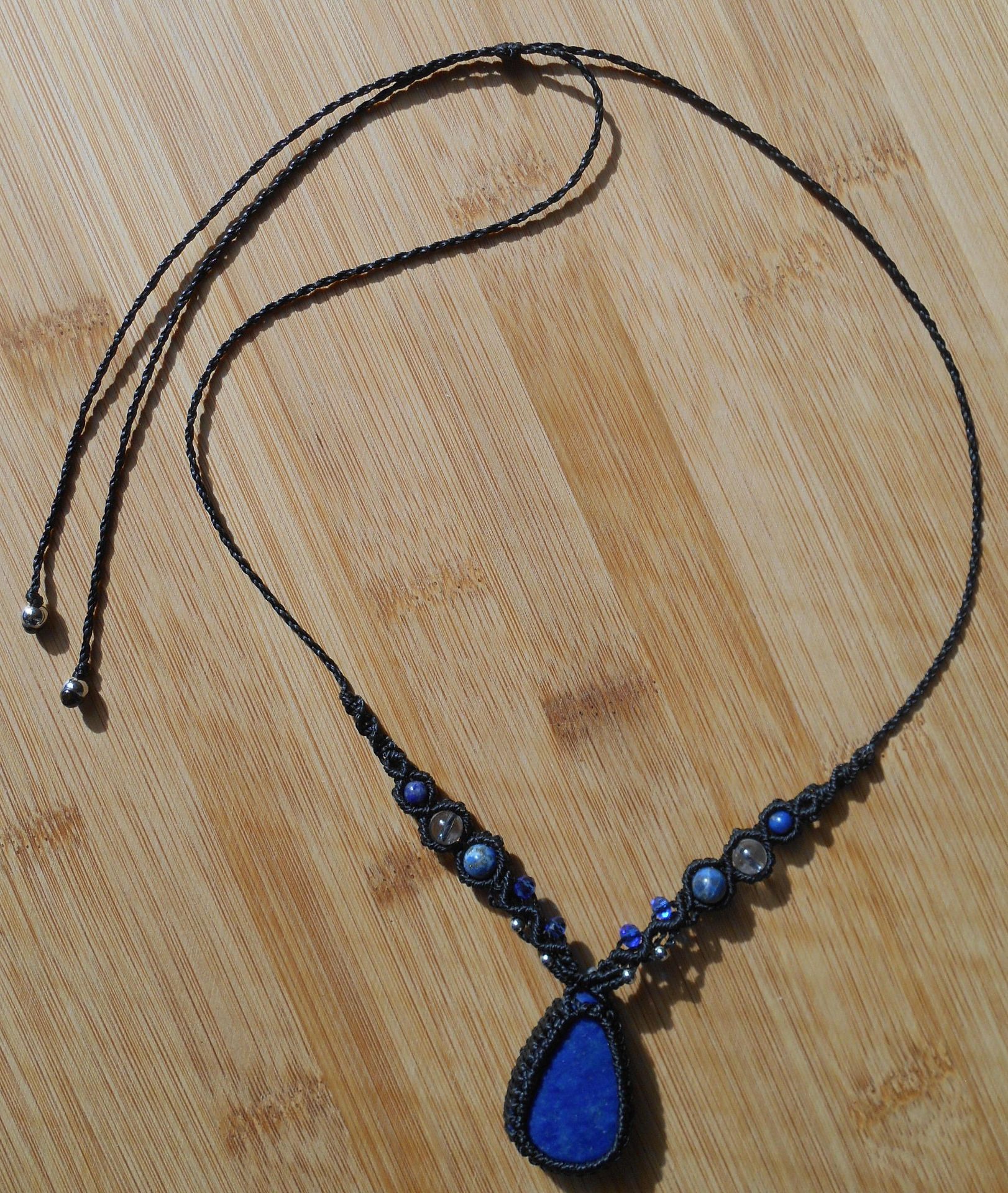 Collier noir avec lapis-lazuli, quartz cristal de roche, perles facettées de verre et acier inoxydable